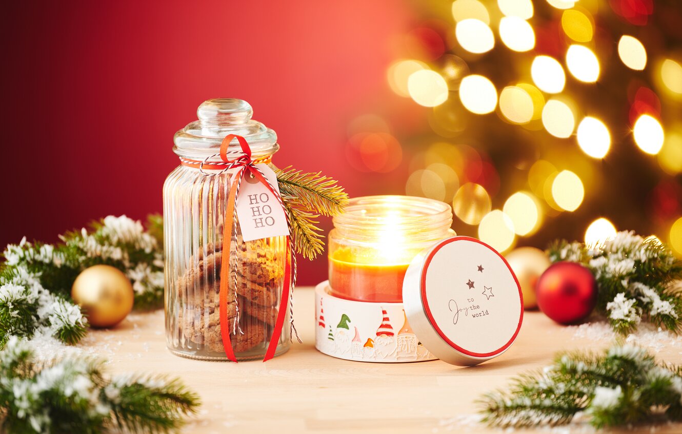 Profite du temps d'attente pendant le séchage pour décorer les bocaux de stockage de manière créative. Un bocal à provisions avec couvercle peut être décoré de manière originale avec un sous-verres en carton . À l'aide de tampons en silicone et de peinture rouge, tu peux donner au bord du couvercle un aspect particulièrement festif. Une banderole décorative complète le design. Pour le pot de bonbons, de jolis rubans et un tag tamponné avec amour sont des accessoires charmants. Une petite branche de sapin sur le tag complète la décoration et lui confère un charme de Noël.