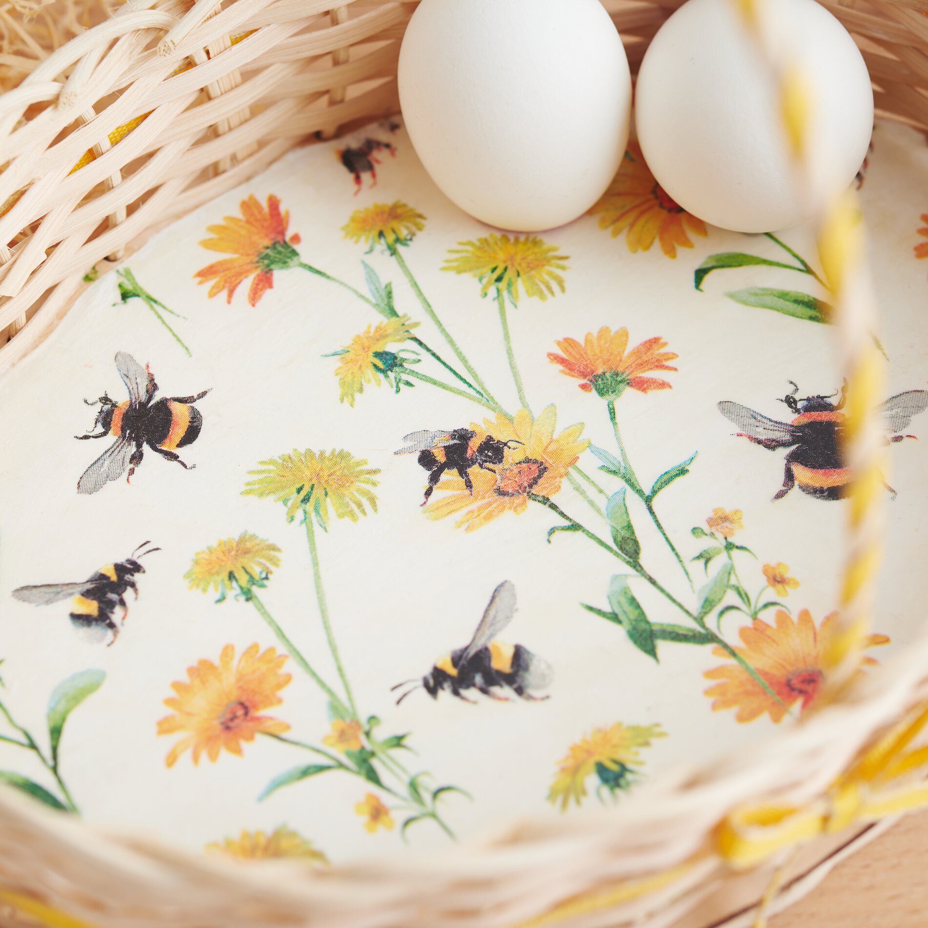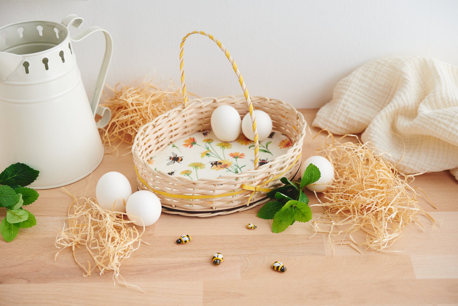 Quoi de plus agréable que de combiner l'atmosphère printanière et le plaisir de Pâques dans un panier en rotin fait main ? Avec ce tutoriel, nous vous montrons comment créer votre propre panier de printemps et le décorer avec le filigrane Serviettage . Ce panier personnalisé est parfait comme nid de Pâques pour présenter des œufs colorés ou des petites surprises. Soyons créatifs et apportons une touche personnelle et saisonnière à ta table de Pâques !