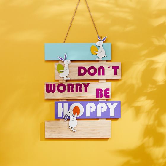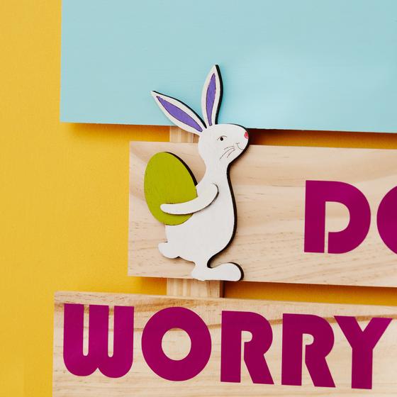 Colle d'abord le message en vinyle sur le panneau et décore ensuite la fresque en collant les lapins peints.