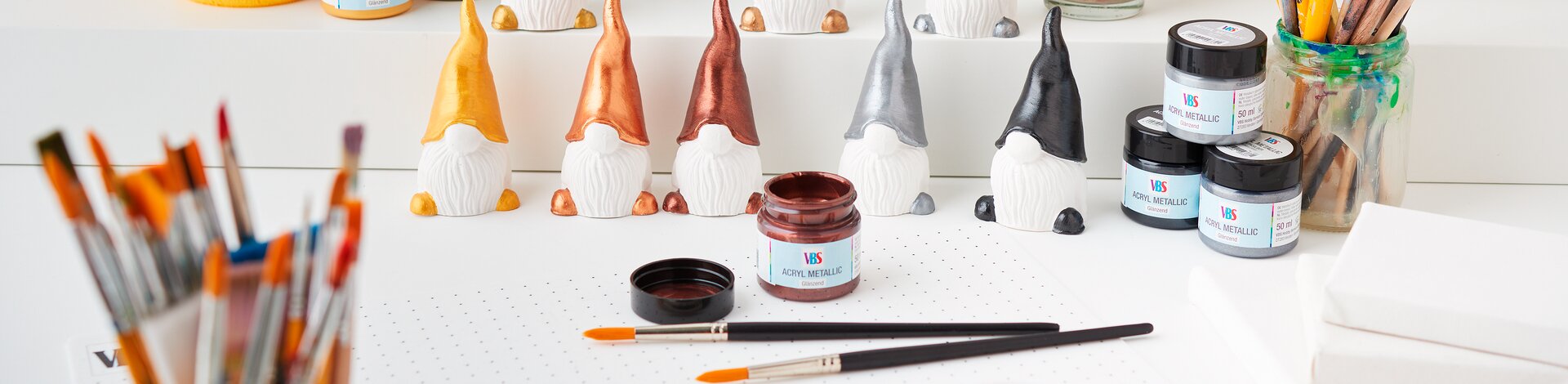 Les accessoires nécessaires à vos réalisations en peinture sont très faciles à trouver sur VBS Hobby Service: des pinceaux de toute taille de toute forme, spécialement conçus selon les supports sur lesquels vous travaillez, des éponges, des pochoirs, des palettes.