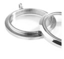 Pendentif en métal de forme ronde. Il comporte un médaillon avec deux faces en verre.