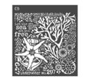 Ce pochoir présente un motif d’env. 20,3 x 20,3 cmcomposé de coraux, d’une étoile de mer, de fossiles et d'inscriptions. Fabriqué en polyéthylène téréphtalate (PET) de seulement 0,3 mm, ce pochoir à la fois résistant et souple pour s’adapter à toutes les surfaces planes comme courbes est l’accessoire parfait pour réaliser de beaux travaux de scrapbooking, décorer des cartes DIY, personnaliser des emballages cadeaux, transformer des châssis entoilés en tableaux et customiser bien des objets. Il s’utilise avec des peintures acryliques à étaler ou à vaporiser, des pâtes de structure, des gessos et des gels à effets. En une seule application rapide de l’auxiliaire de peinture, les motifs dans toute leur richesse sont parfaitement réalisés.