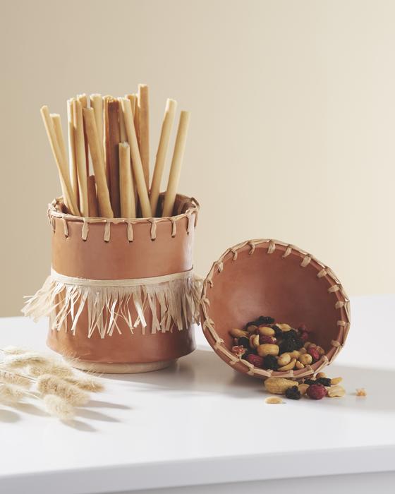 Ce cache-pot et cette coupelle en argile sont à la portée de tous les créateurs ! Avec cette fiche créative, nous vous accompagnons pas-à-pas pour réaliser ces deux objets qui trouveront leur place sur la table à l'heure de l'apéritif ou dans votre chambre pour ranger vos bijoux ou autres accessoires.