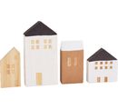 Découvrez le monde enchanteur de la décoration avec notre charmante rangée de maisons en bois. Ces quatre maisons décoratives, joliment peintes, donnent vie à n'importe quel environnement et vous invitent à laisser libre cours à votre créativité.