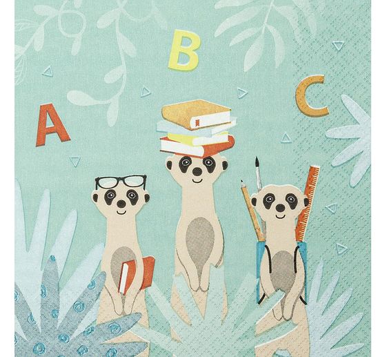 Accueillez le printemps avec la joyeuse serviette « Have Fun » ! Avec son motif affectueux de suricates portant des livres et des crayons, elle dégage une atmosphère ludique et créative. Le serviettage vous permet d'appliquer le motif sur du bois, du tissu, de la céramique ou du verre. Transformez les meubles ou les tiroirs en œuvres uniques. Trouvez l'inspiration dès maintenant et commencez à créer !