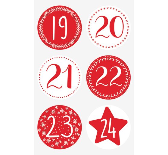 Il contient 24 sachets en papier de qualité alimentaire d’env. 9,7 x 6 x 18 cm arborant un joli imprimé pois rouges et blancs ainsi que 24 stickers numérotés.