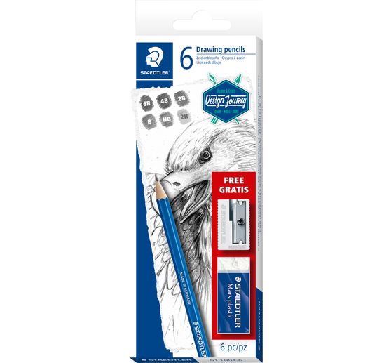 L’assortiment de crayons graphite Staedtler Lumograph, 8 pièces, issu de la série « Design Journey » est l’un des plus complets. Comptant 6 crayons graphite Staedtler Lumograph de qualité au corps hexagonal et déclinés en différentes duretés ainsi qu’une gomme et un taille-crayon, il est parfait pour les travaux techniques et artistiques à l’école tout comme au bureau.