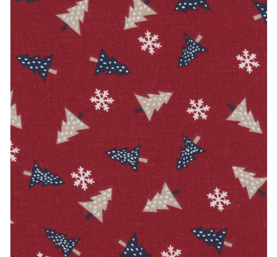 Découvrez le tissu parfait pour vos travaux de couture de Noël. Le tissu coton imprimé « Sapins de Noël » est un tissu imprimé avec des petits sapins et des flocons de neige. Un beau tissu pour tes idées de couture créatives pendant la période de Noël. Ce tissu crée une atmosphère hivernale et peut être utilisé de multiples façons. La largeur du tissu est de 140 cm et son poids de 125 g/m². Il est parfait pour les projets DIY tels que les calendriers de l'Avent, les décorations de Noël, les emballages cadeaux ou encore les vêtements. Un tissu vendu au mètre qui est découpé à la demande.