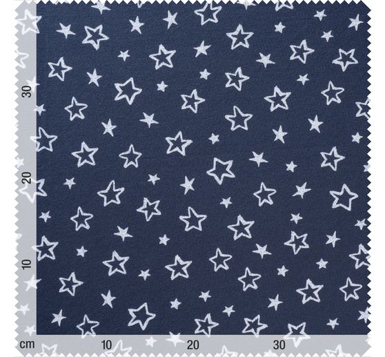 Vendu au mètre, ce tissu d’env. 190 g/m² en laize de 150 cm est composé à 94 % de coton et à 6 % d'élasthanne. Doux, robuste, légèrement extensible et quasi indéformable, ce tissu est parfait pour confectionner des vêtements confortables (t-shirts, leggings, shorts, robes, bonnets, pyjamas…) et des accessoires de mode à porter tout au long de l’année mais aussi de déco pour la maison (linge de lit). Son imprimé original et intemporel, fait d’étoiles blanches d’env. 1,5 à 3,5 cm convient aux enfants comme aux adultes.