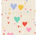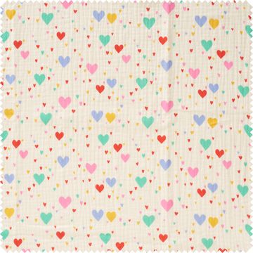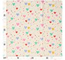 Donnez vie à vos projets créatifs avec le tissus polyester au mètre « Tiamo » qui, grâce à son revêtement PU, n'est pas seulement pratique mais aussi élégant. Vous allez adorer les cœurs de différentes couleurs et tailles qui donnent à ce tissu un aspect particulier.